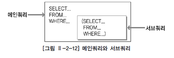 - 하나의 SQL문안에 포함되어 있는 또 다른 SQL문을 말한다.