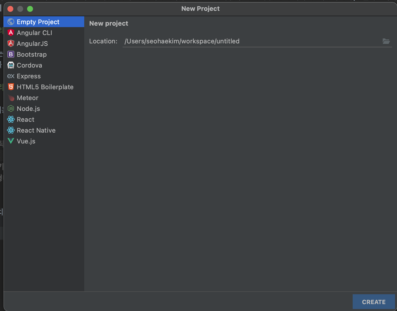 Webstorm 프로젝트 생성