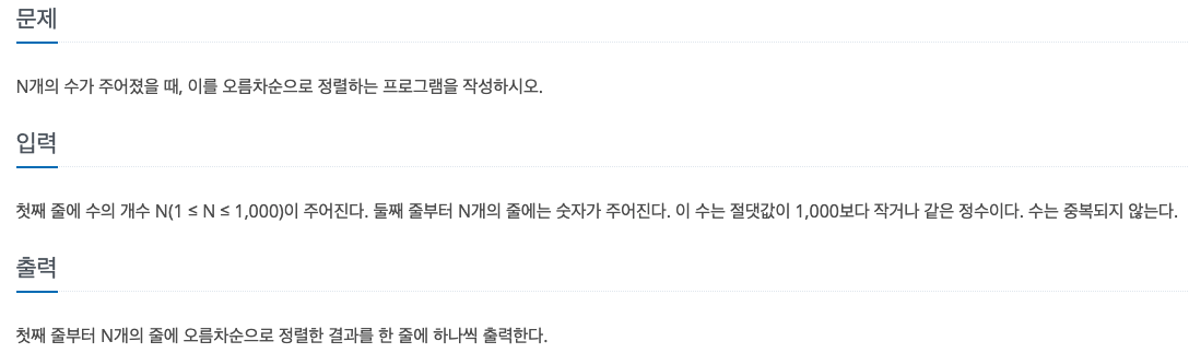 첫째 줄에 수의 개수 N(1 ≤ N ≤ 1,000)이 주어진다. 둘째 줄부터 N개의 줄에는 숫자가 주어진다. 이 수는 절댓값이 1,000보다 작거나 같은 정수이다. 수는 중복되지 않는다.