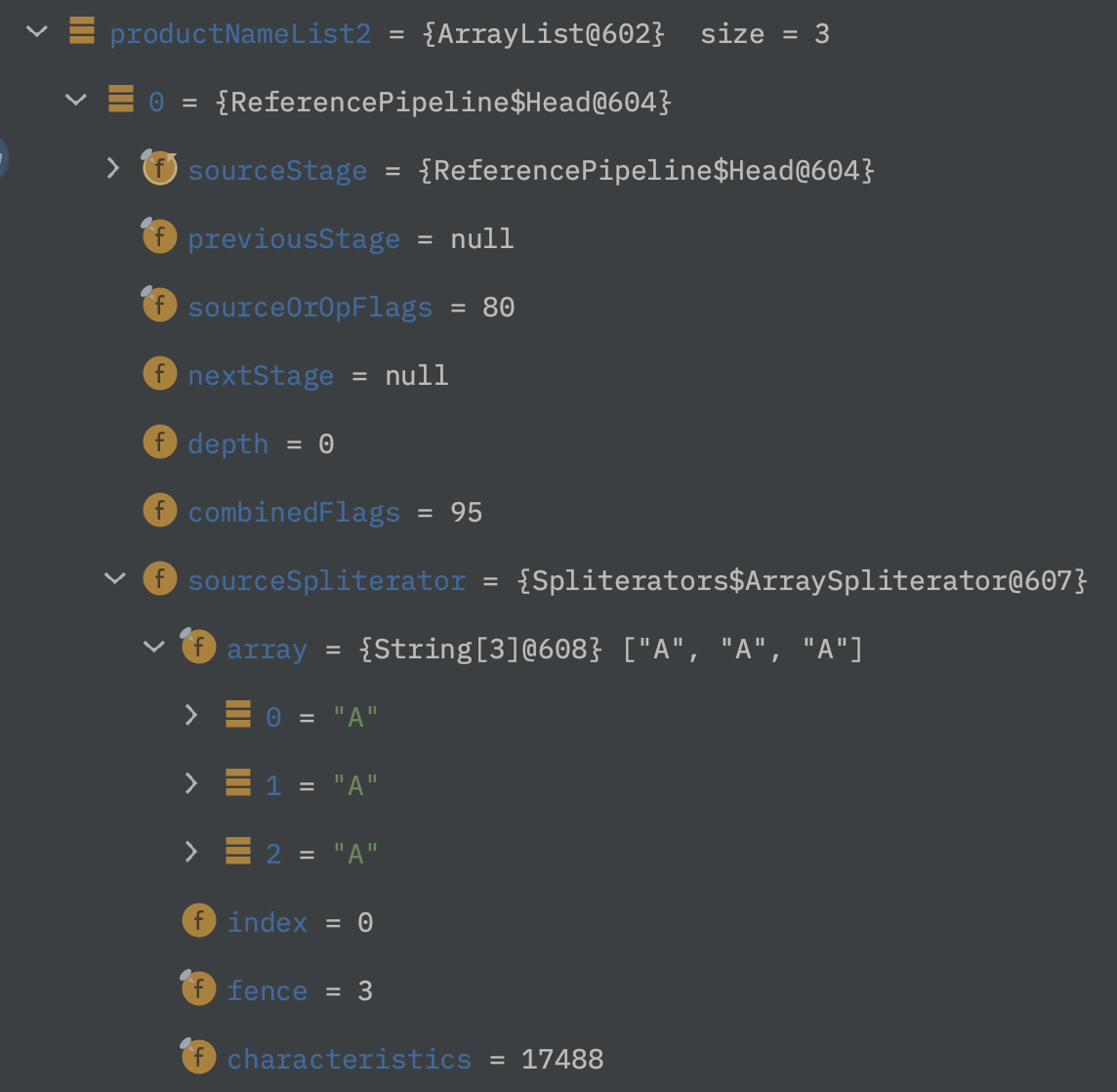- 2) 각 배열을 별도의 스트림으로 생성 (Stream<String>)