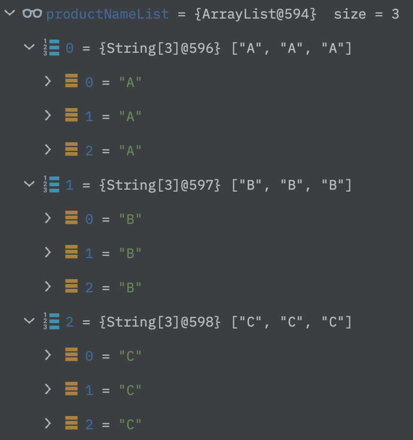 Stream<String[]> 의 "AAA", "BBB", "CCC"