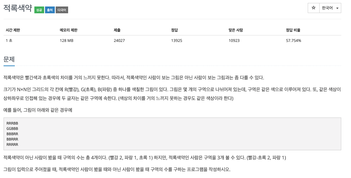 문제 10026번 - 적록색약 문제