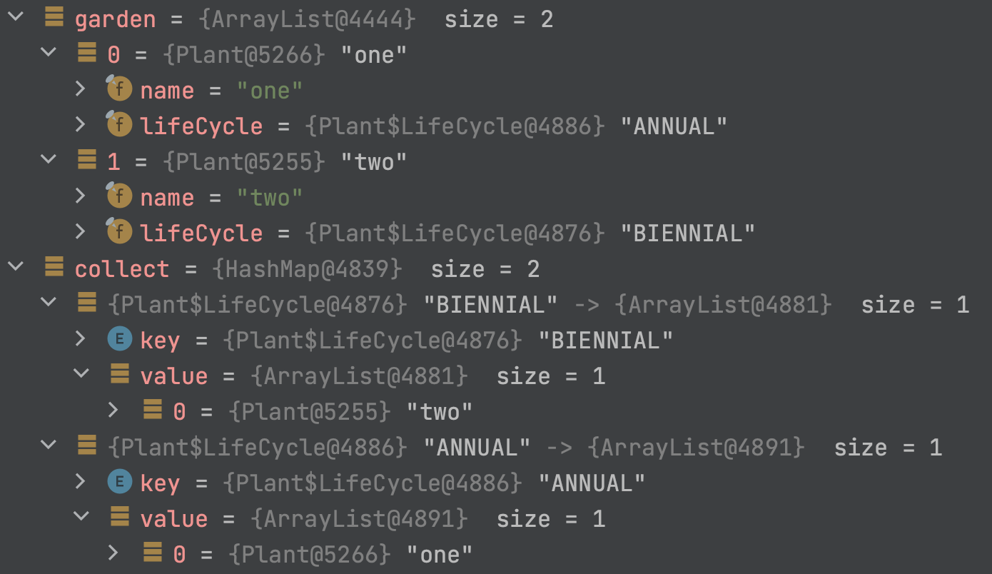 plantsByLifeCycle[plant.lifeCycle.ordinal()].add(plant);