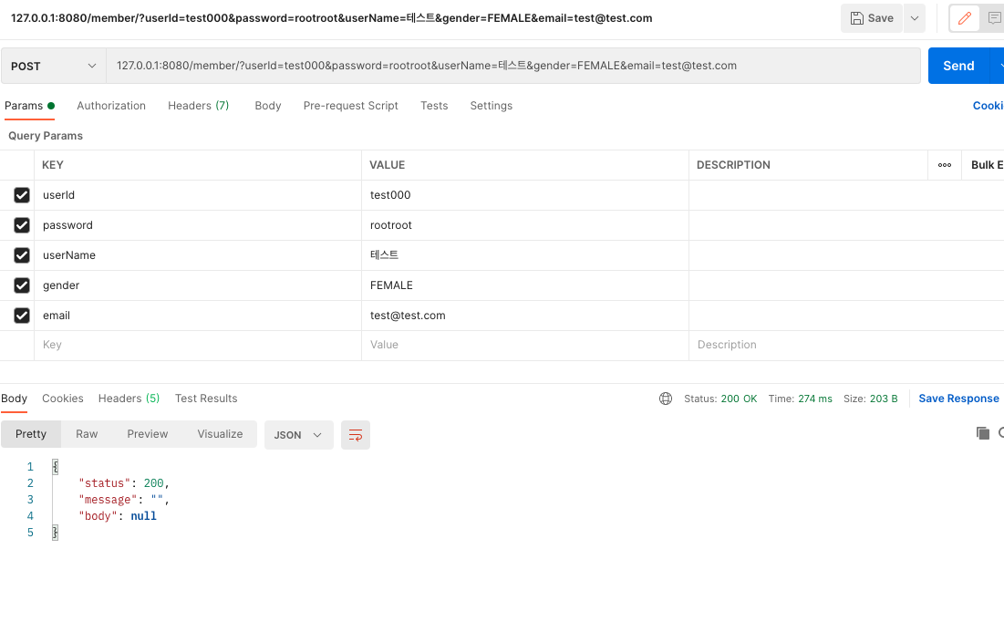 테스트 코드 외에도 직접 Postman 으로 API를 호출하여 확인해볼 수 있다.