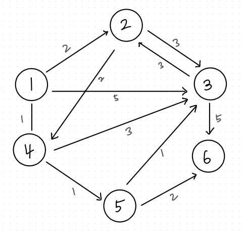 - 1번 노드 -> 3번 노드까지의 비용 : 5