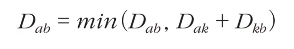 graph[a][b] = Math.min(graph[a][b], graph[a][k] + graph[k][b]);
