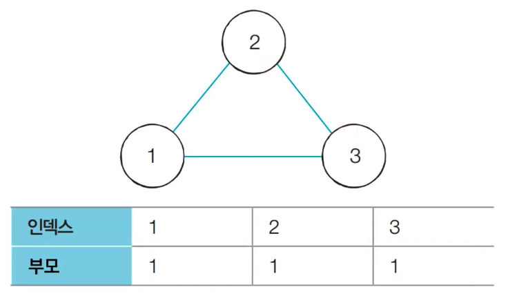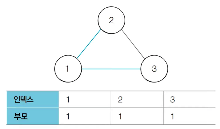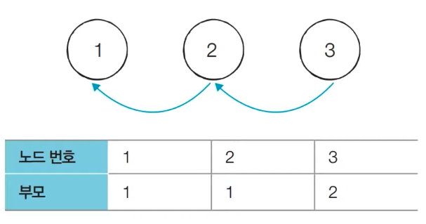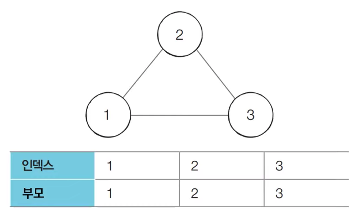 3) 1번 노드의 부모 노드인 1이 3번 노드의 최종 루트 노드다.