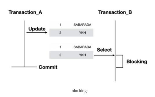 | Non-Repeatable Read | 한 트랜잭션 내에서 같은 Key를 가진 Row를 두번 읽었는데, 그 사이에 값이 변경되거나 삭제되어 결과가 다르게 나타나는것 |