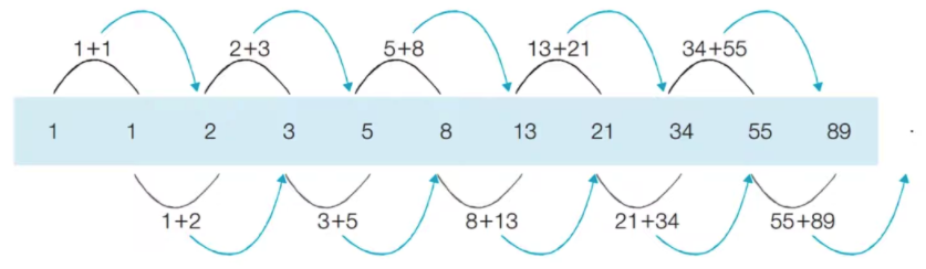 - 앞의 2개의 인덱스 원소의 합이 그 다음 인덱스 원소가 된다.
