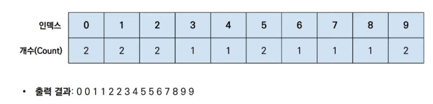 for (int i = 0; i <= MAX_VALUE; i++) { // 배열에 기록된 정렬 정보 확인