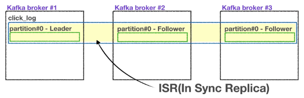 이런 차이를 모니터링하기 위해 리더 파티션은 replica.lag.time.max.ms 값 만큼의 주기를 가지고 팔로워 파티션이 데이터를 복제하는지 확인한다. 만약 팔로워 파티션이 replica.lag.time.max.ms 값보다 더 긴 시간동안 데이터를 가져가지 않는다면 해당 팔로워 파티션에 문제가 생긴것으로 판단하고 ISR 그룹에서 제외한다.