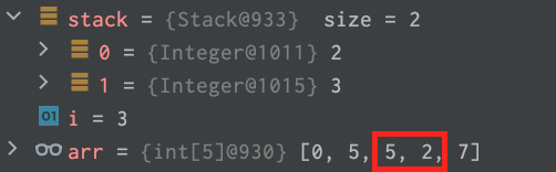 arr[2] =5 < arr[i] = 7 이므로 아래 로직이 수행된다.