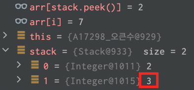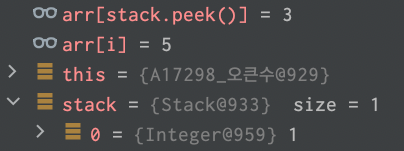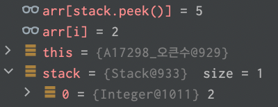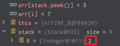 stack에 남아있다는 것은, 오른쪽으로 자신보다 큰 원소가 없었거나, 배열 arr의 마지막 원소인 것이다.