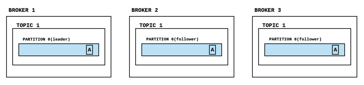 리더 파티션에 적재되었음을 보장하지만, 팔로워 파티션은 보장하지 않는다. 리더 파티션에 데이터가 정상적으로 적재되었다해도, 복제 개수를 2 이상으로 운영할 경우 팔로워 파티션에는 아직 데이터가 동기화되지 않을 수 있는데, 팔로워 파티션이 데이터를 복제하기 직전에 리더 파티션이 있는 브로커에 장애가 발생하면 동기화되지 못한 일부 데이터가 유실될 수 있다.