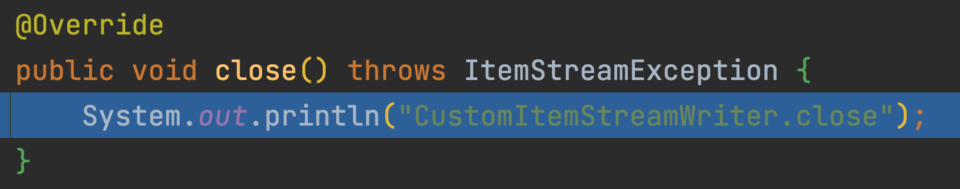 - CustomItemStreamReader의 close() 호출 -> CustomItemStreamWriter의 close() 호출