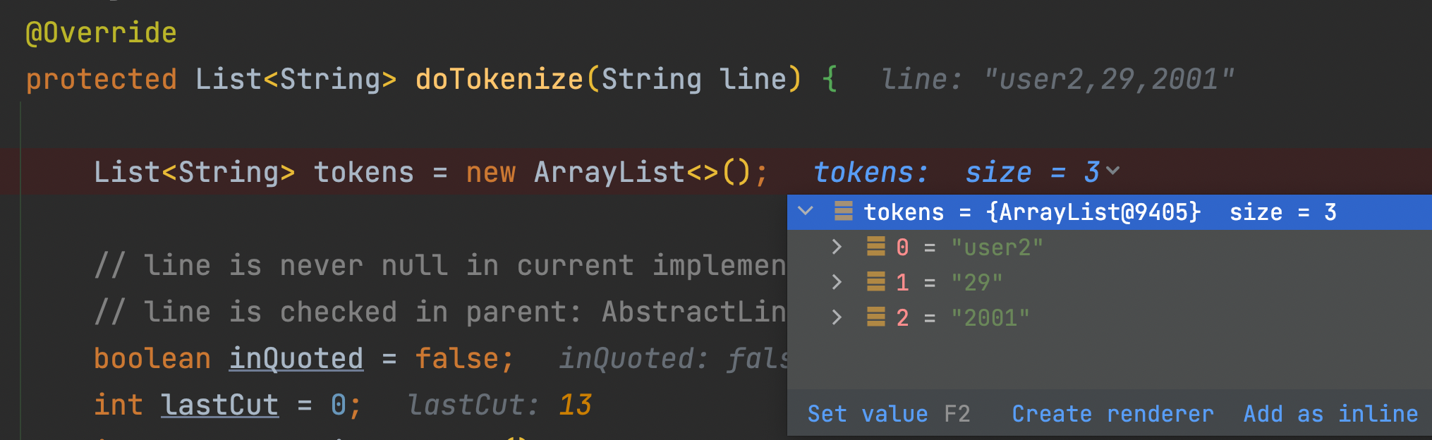 ▶ AbstractLineTokenizer.java > tokenize()