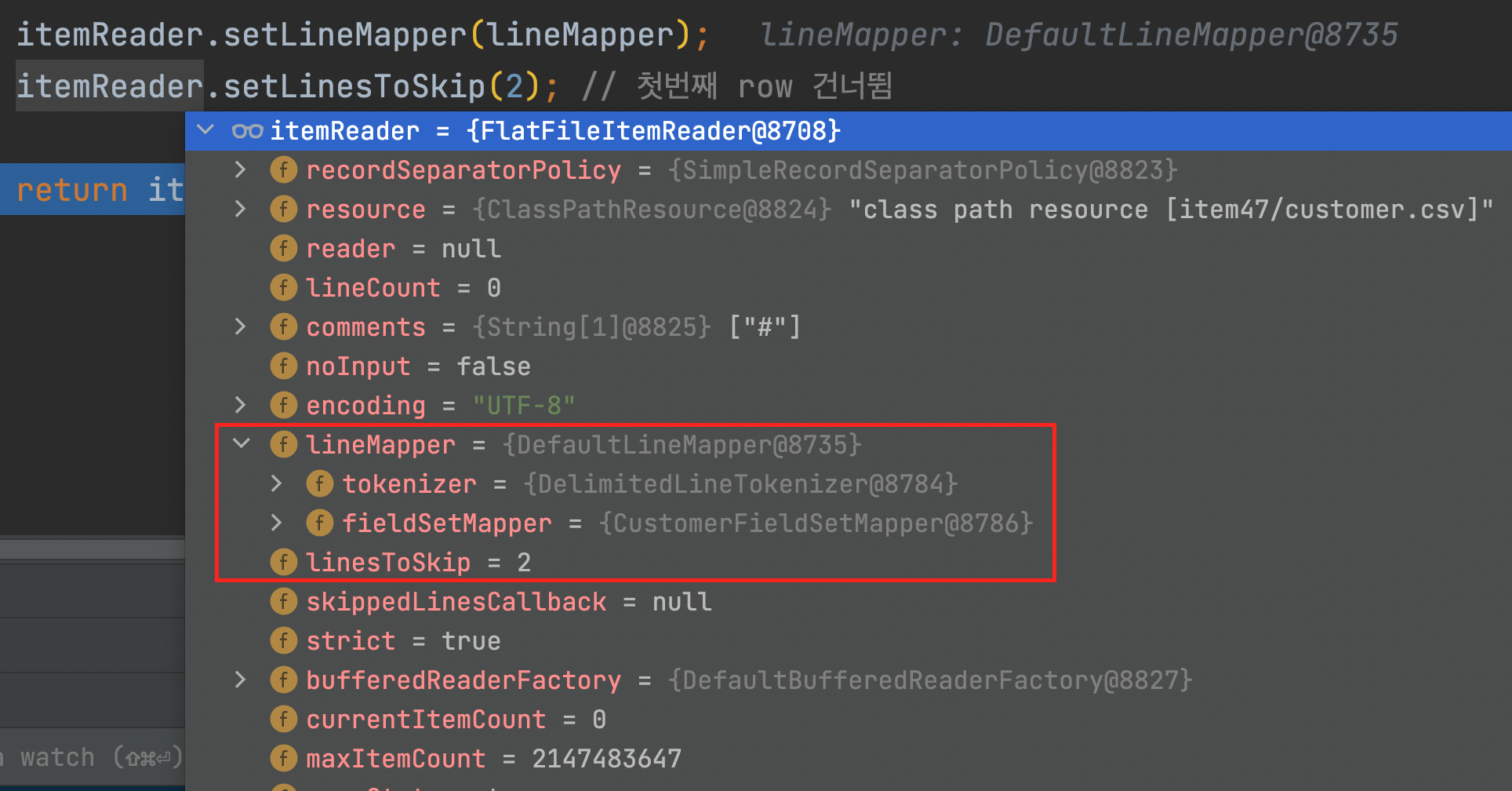 itemReader.setLineMapper(lineMapper);
