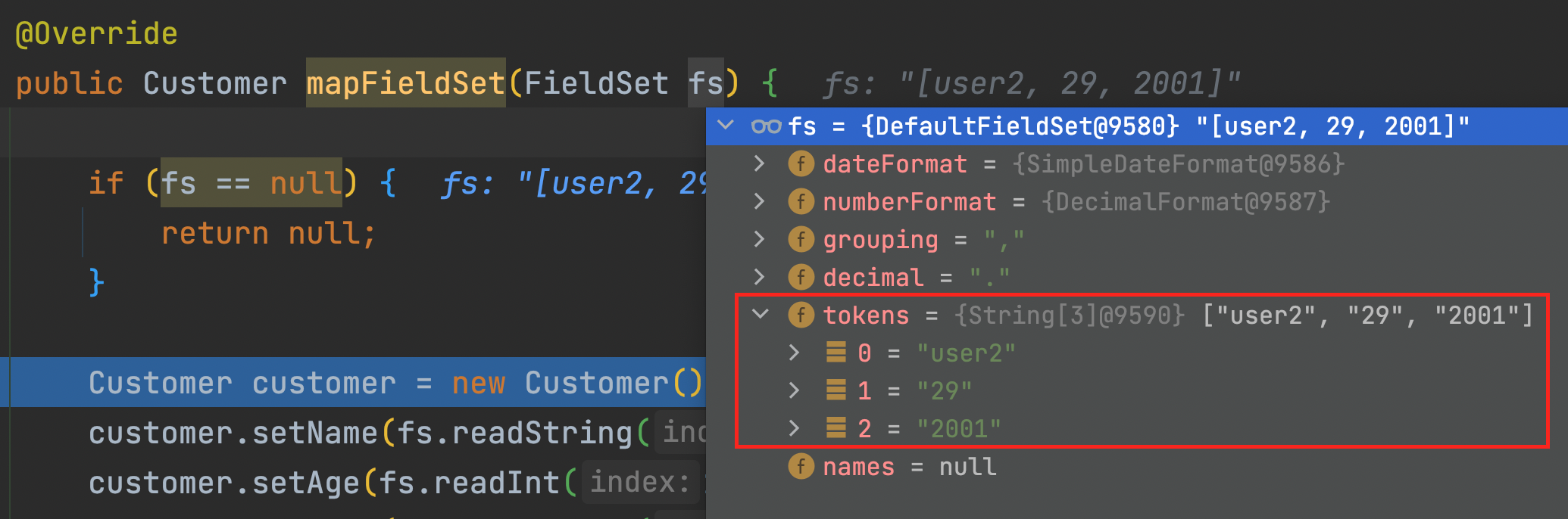 lineMapper.setFieldSetMapper(new CustomerFieldSetMapper());