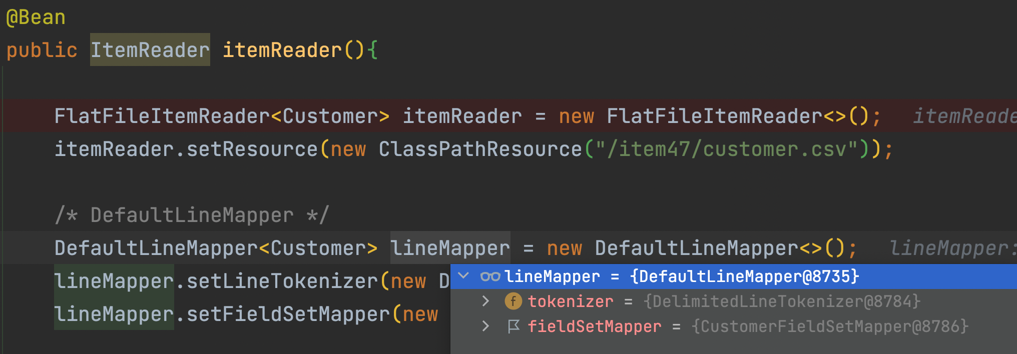 lineMapper.setFieldSetMapper(new CustomerFieldSetMapper()); /* filedSetMapper */