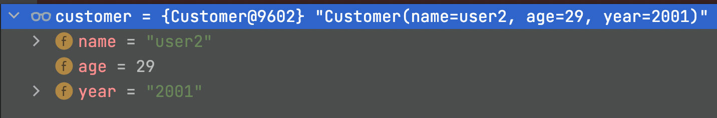 Customer(name=user2, age=29, year=2001),
