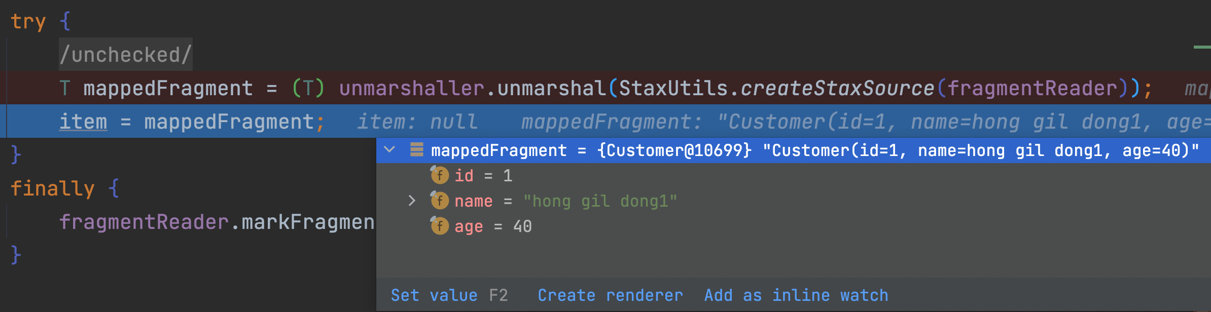 - Unmarchaller.unmashall : XML을 객체로 역직렬화한다.
