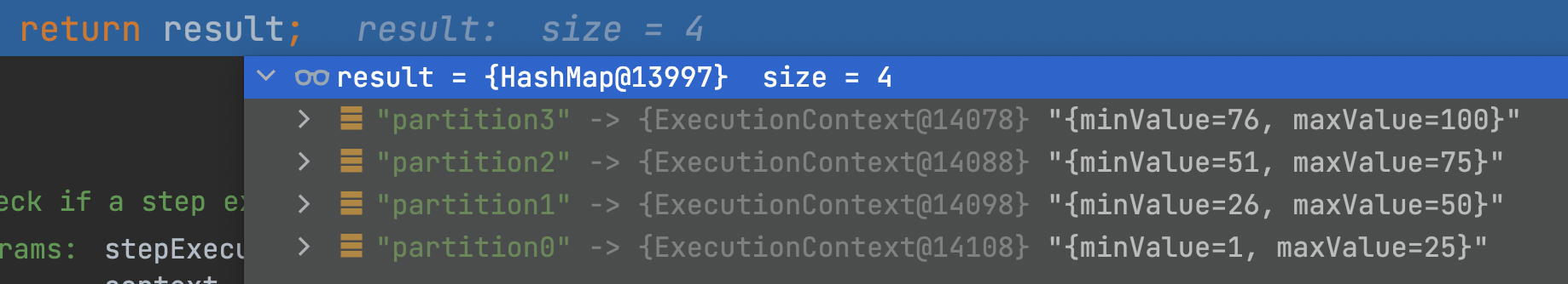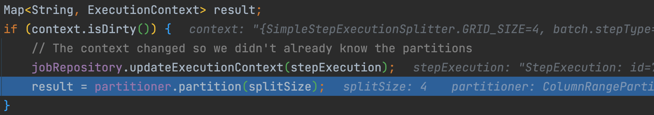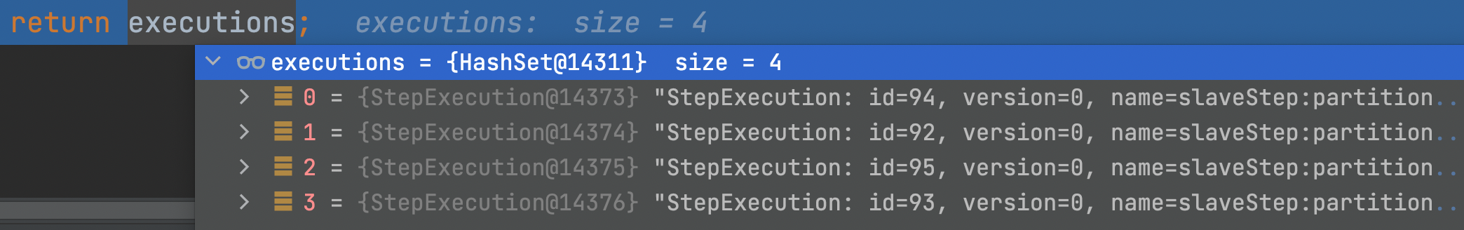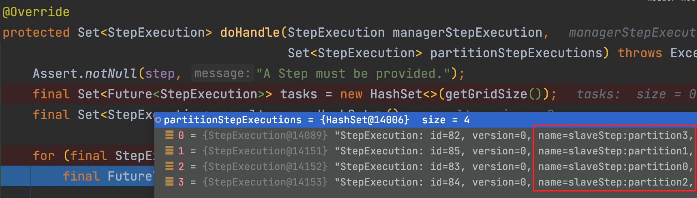 Collection<StepExecution> executions = partitionHandler.handle(stepExecutionSplitter, stepExecution);