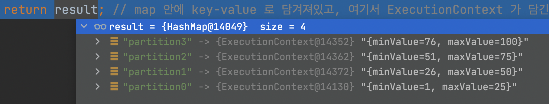 해당 Reader를 수행하는 각 스레드에 StepExecution이 있을것이고, 이 안에 ExecutionContext가 있을것이다. 이 ExecutionContext에 minValue, maxValue를 꺼낸다.