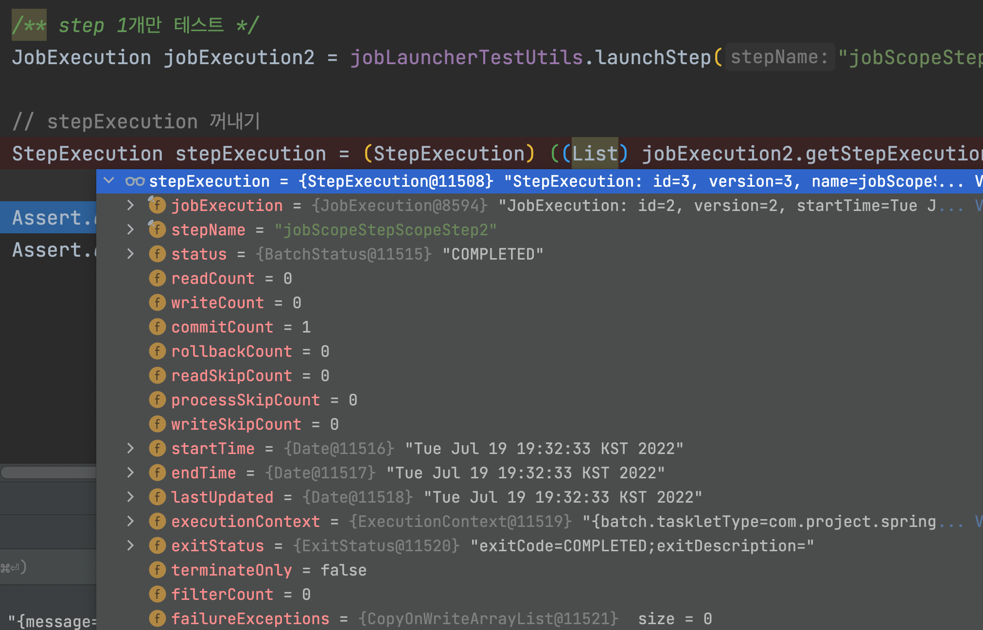 JobExecution jobExecution2 = jobLauncherTestUtils.launchStep("jobScopeStepScopeStep2");