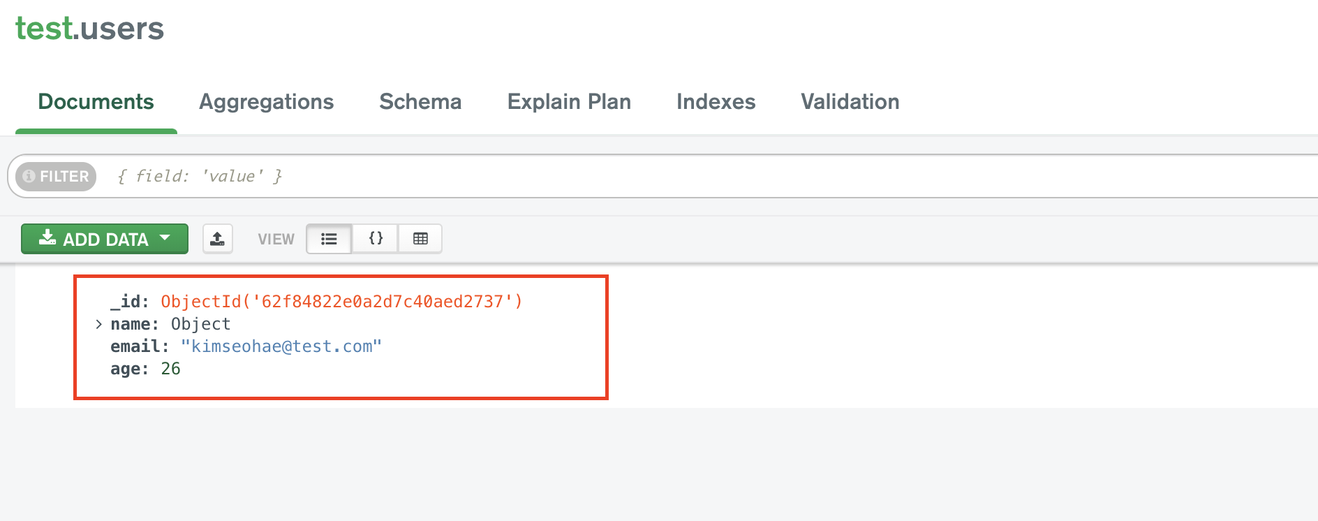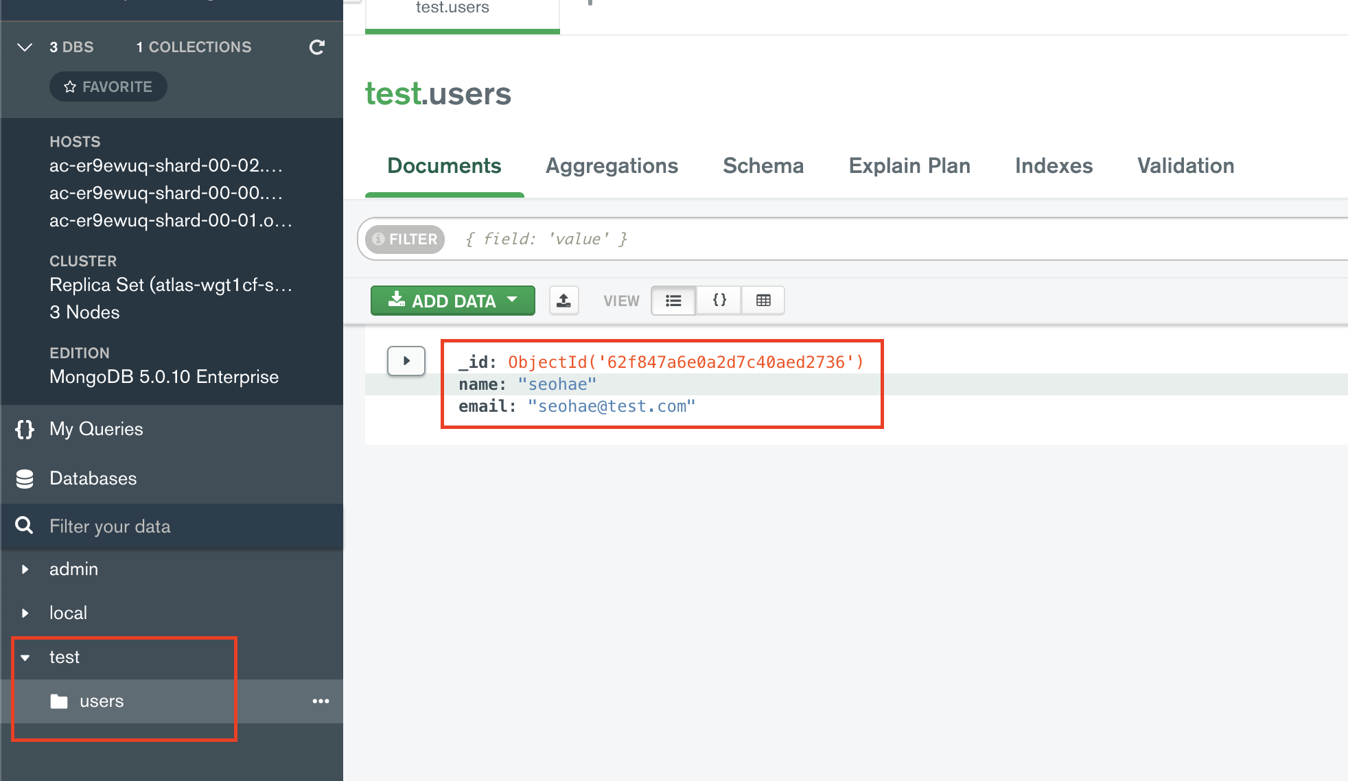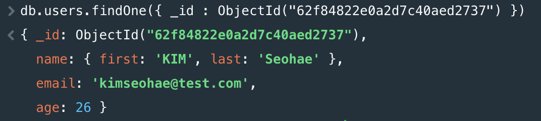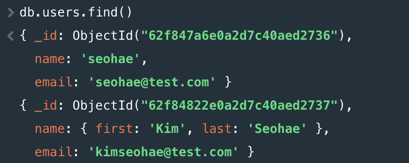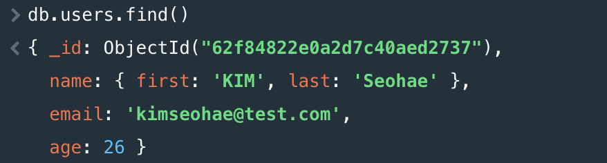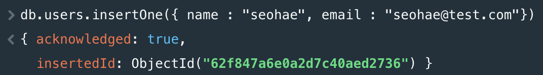 db.users.insertOne({ name : "seohae", email : "seohae@test.com"})