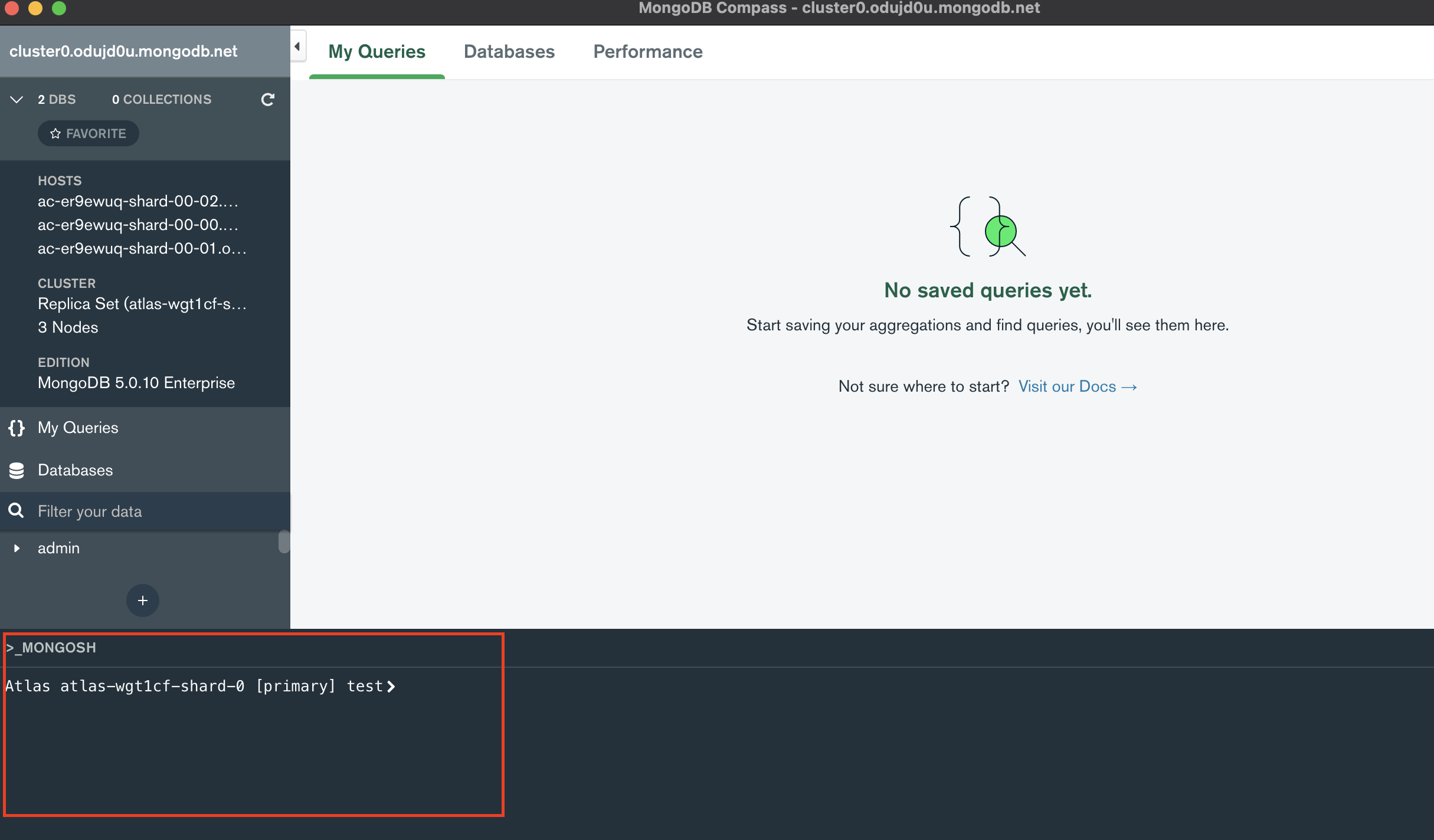 _MONGOSH 에 명령어를 입력해보자.