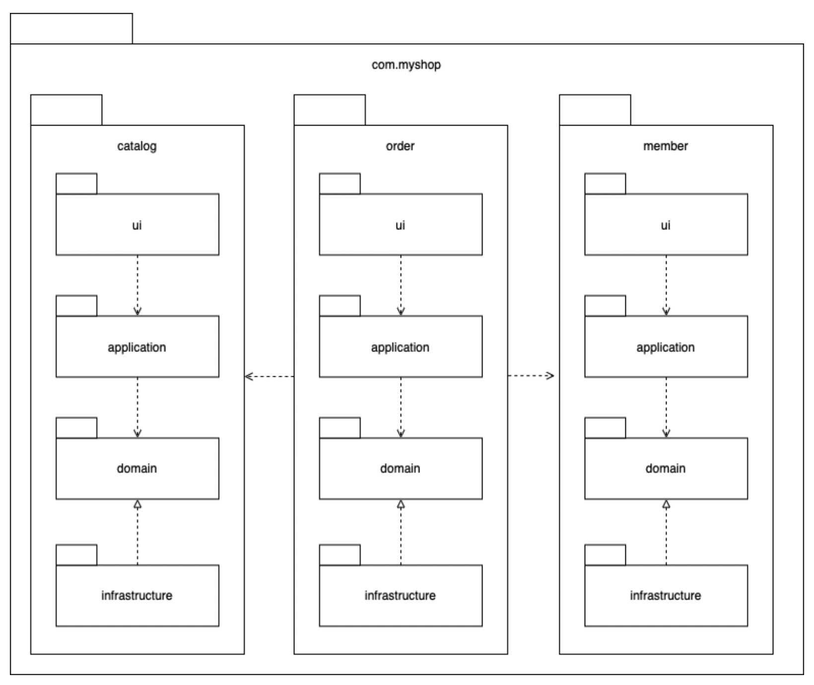 아키텍처의 각 영역은 별도 패키지에 위치한다.