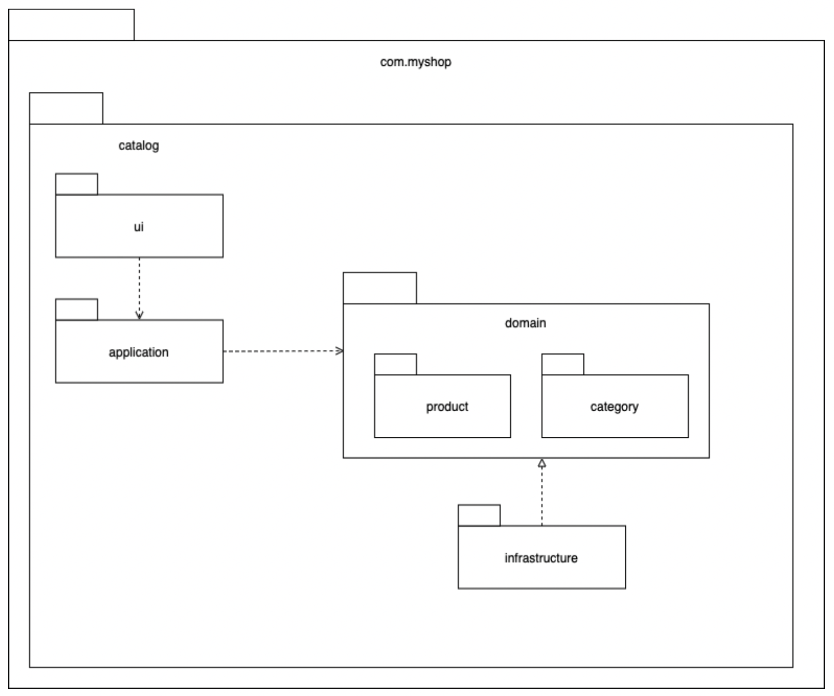 예를들어 카탈로그 하위 도메인이 상품 애그리거트와 카테고리 애그리거트로 구성될 경우 도메인을 두개의 하위 패키지로 구성할 수 있다.