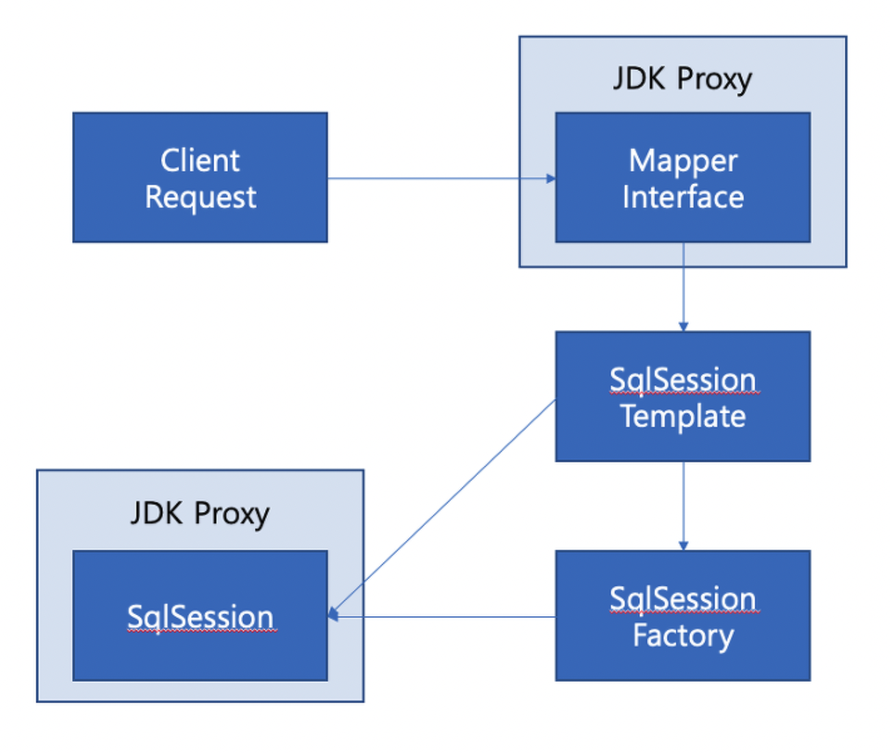 2) Client Request -> JDK Proxy(Mapper 인터페이스)
