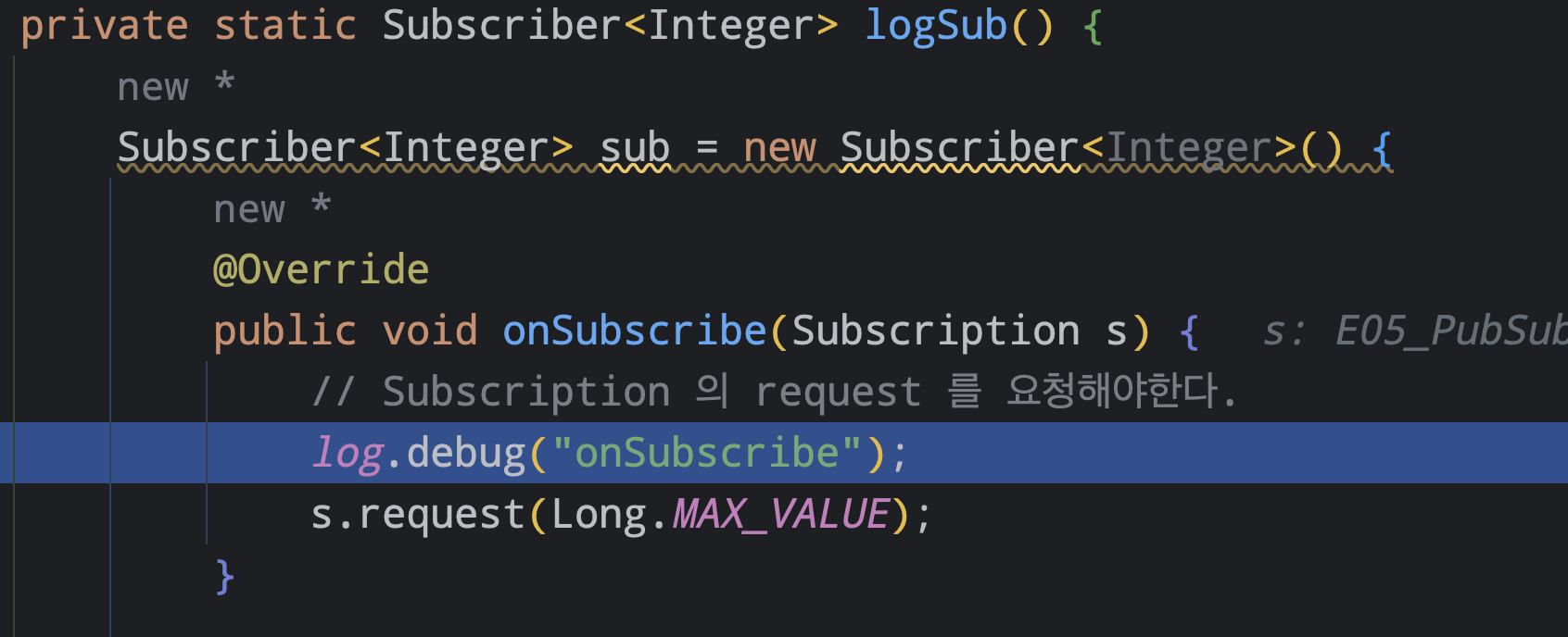 결국 Publisher의 subscribe() 메서드를 호출하여 구독하는데, 이때 파라미터 Subscriber 객체를 넘기면 된다.