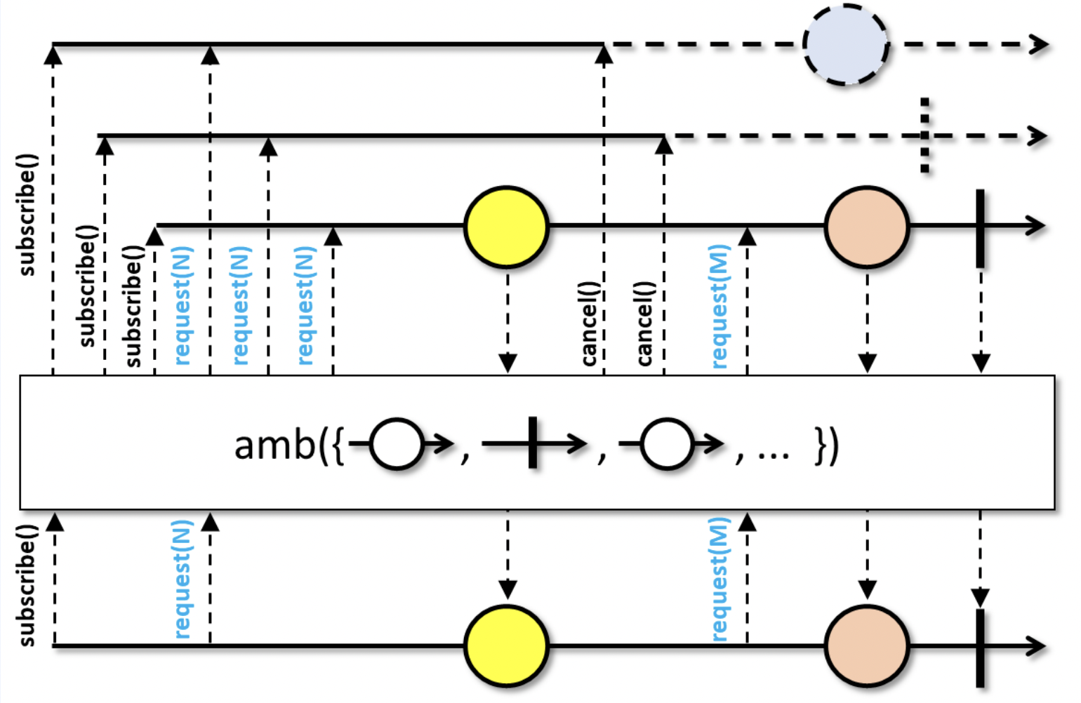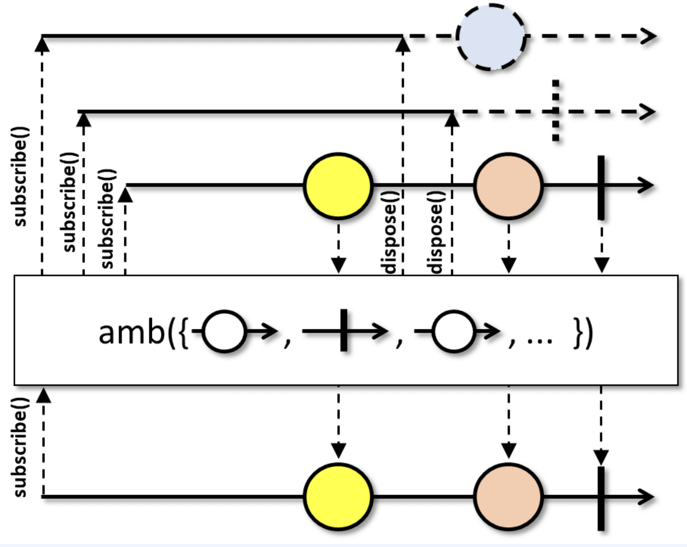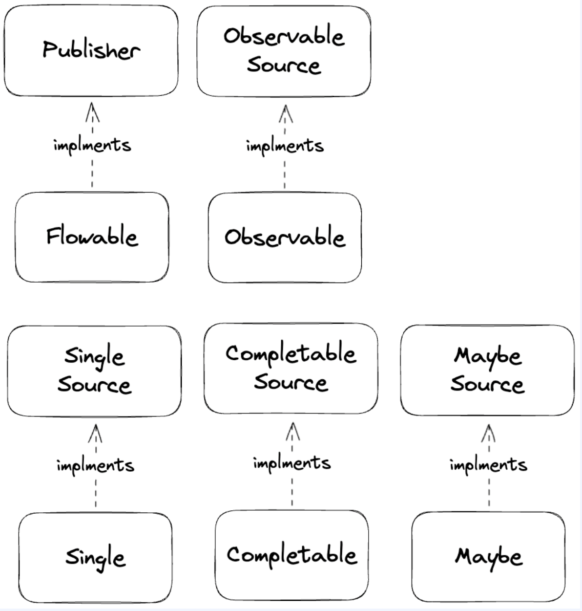 | Maybe | cancelation 지원 | 0..1 | 언제든지 가능 onNext 이후 바로 |