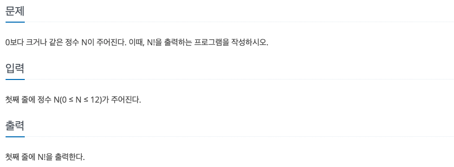 https://www.acmicpc.net/problem/10872