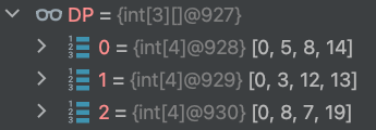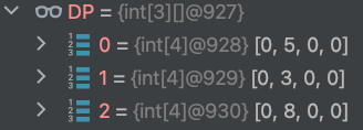 111번째 줄에서 DP의 상태는 아래와 같다.